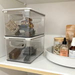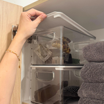 Ce bac en plastique polyvalent avec couvercle Noëlla est l'accessoire idéal pour organiser et ranger vos affaires en toute simplicité. Sa transparence vous permet de voir facilement son contenu, et son couvercle permet de les empiler! Un must-have pour un espace propre et ordonné.