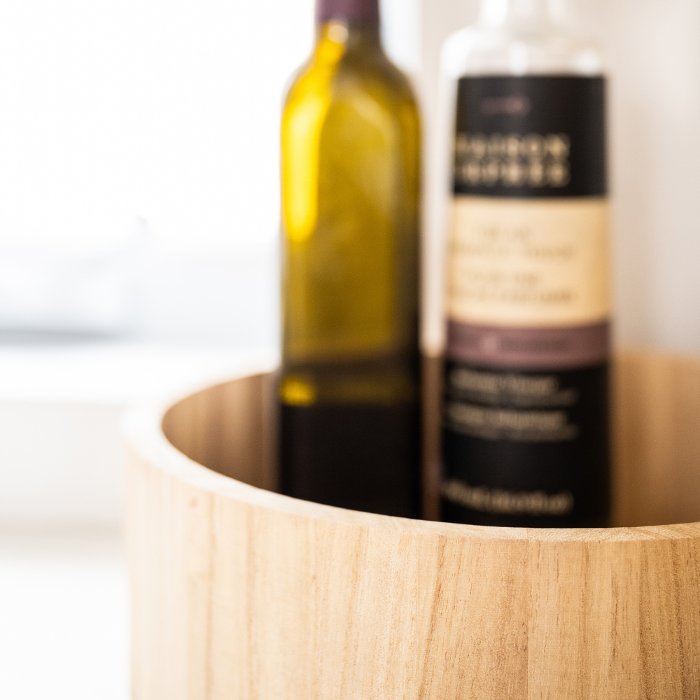 Organisez avec une touche naturelle votre espace avec ce plateau tournant en bois recyclé, conçu avec un rebord de 4 pouces de haut pour sécuriser vos articles tout en facilitant leur accès. Son mécanisme rotatif à 360° vous permet d’optimiser le rangement et de garder vos essentiels à portée de main.