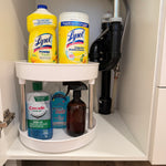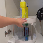 Le plateau tournant Laurence deviendra votre indispensable, en optimisant l'espace en hauteur et en vous permettant d'avoir tout à portée de main. Ce plateau à deux étages est la solution idéale pour ranger tout facilement et accéder à vos produits rapidement. Le rebord du plateau supérieur est de 2" et celui du bas est 1.75" de hauteur.