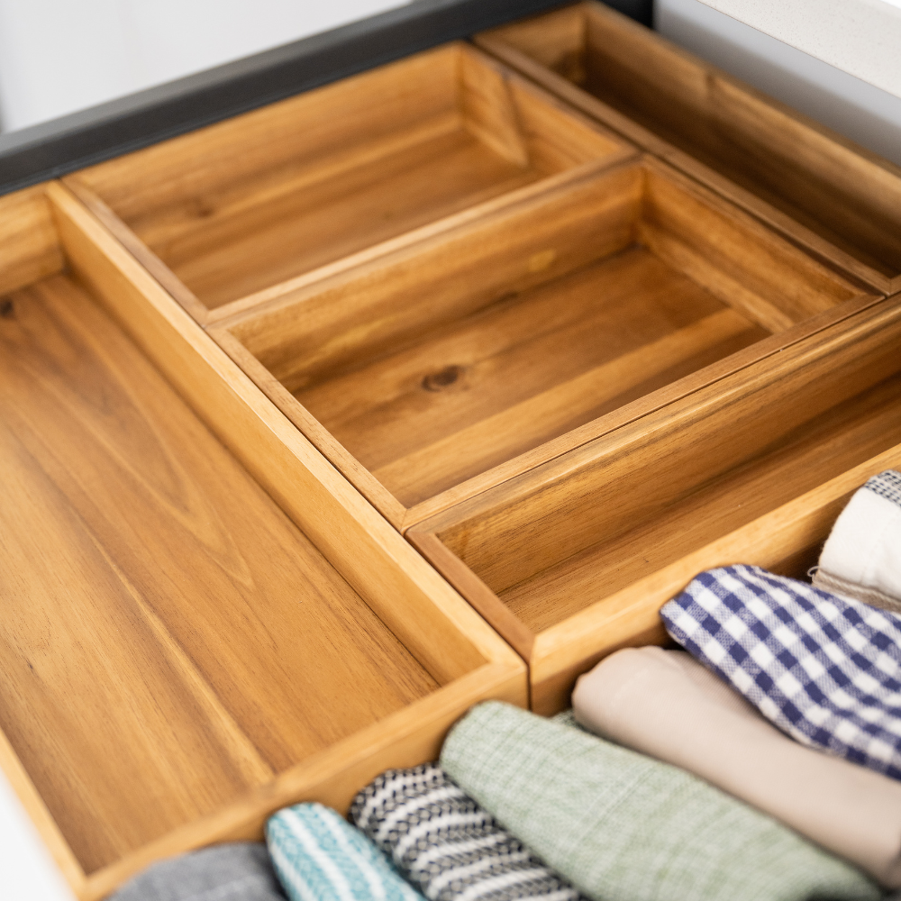 Organisateurs de tiroir en acacia – Rangement sur mesure et design naturel