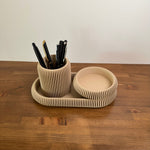 Ce plateau rond, fabriqué au Québec, est un accessoire à la fois élégant et pratique pour organiser vos petits objets du quotidien. Que ce soit pour déposer vos bijoux préférés dans la chambre ou pour rassembler trombones et petits accessoires au bureau, ce plateau s'adapte à tous vos besoins. Son design simple et chic en fait un élément de rangement discret et harmonieux, parfait pour compléter les autres articles de cette collection.