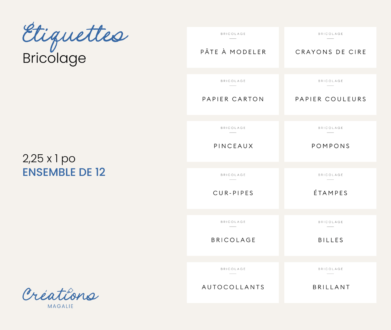 Fini le désordre ! Identifiez vos fournitures de bricolage facilement et profitez d’un atelier toujours bien organisé grâce à ces étiquettes pratiques.
