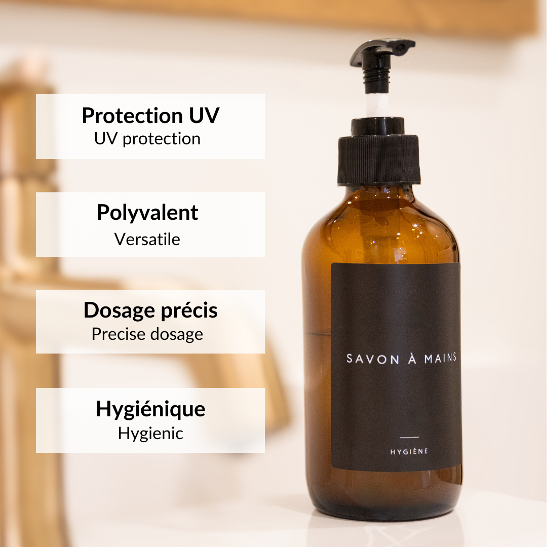 Bouteilles ambrées avec pompe - Élégance et praticité pour vos produits liquides