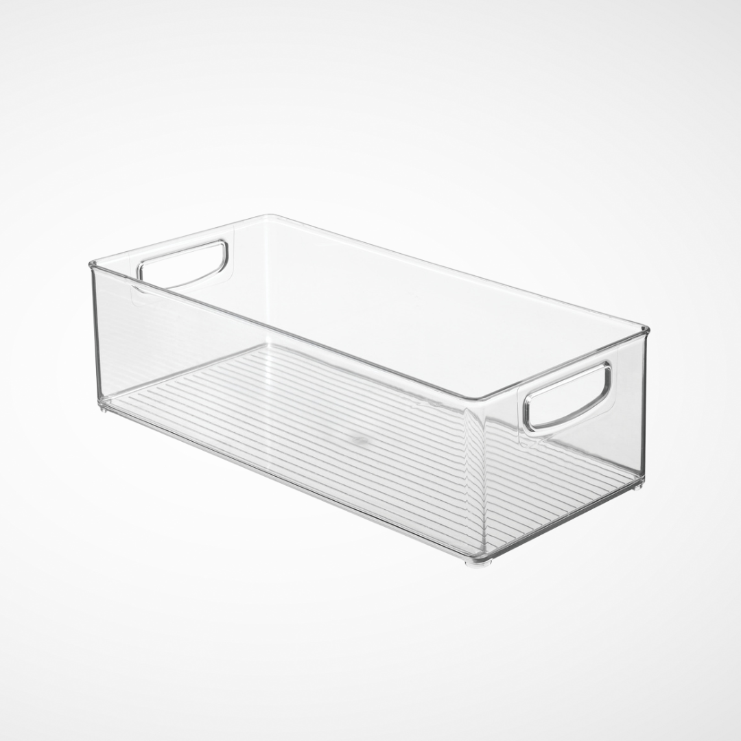 Le bac de rangement Claire est spécialement conçu pour optimiser l’espace en profondeur, que ce soit dans un garde-manger, un placard ou un tiroir. Sa structure allongée s’adapte parfaitement aux étagères profondes, vous permettant d’organiser efficacement vos produits sans perdre d’espace.