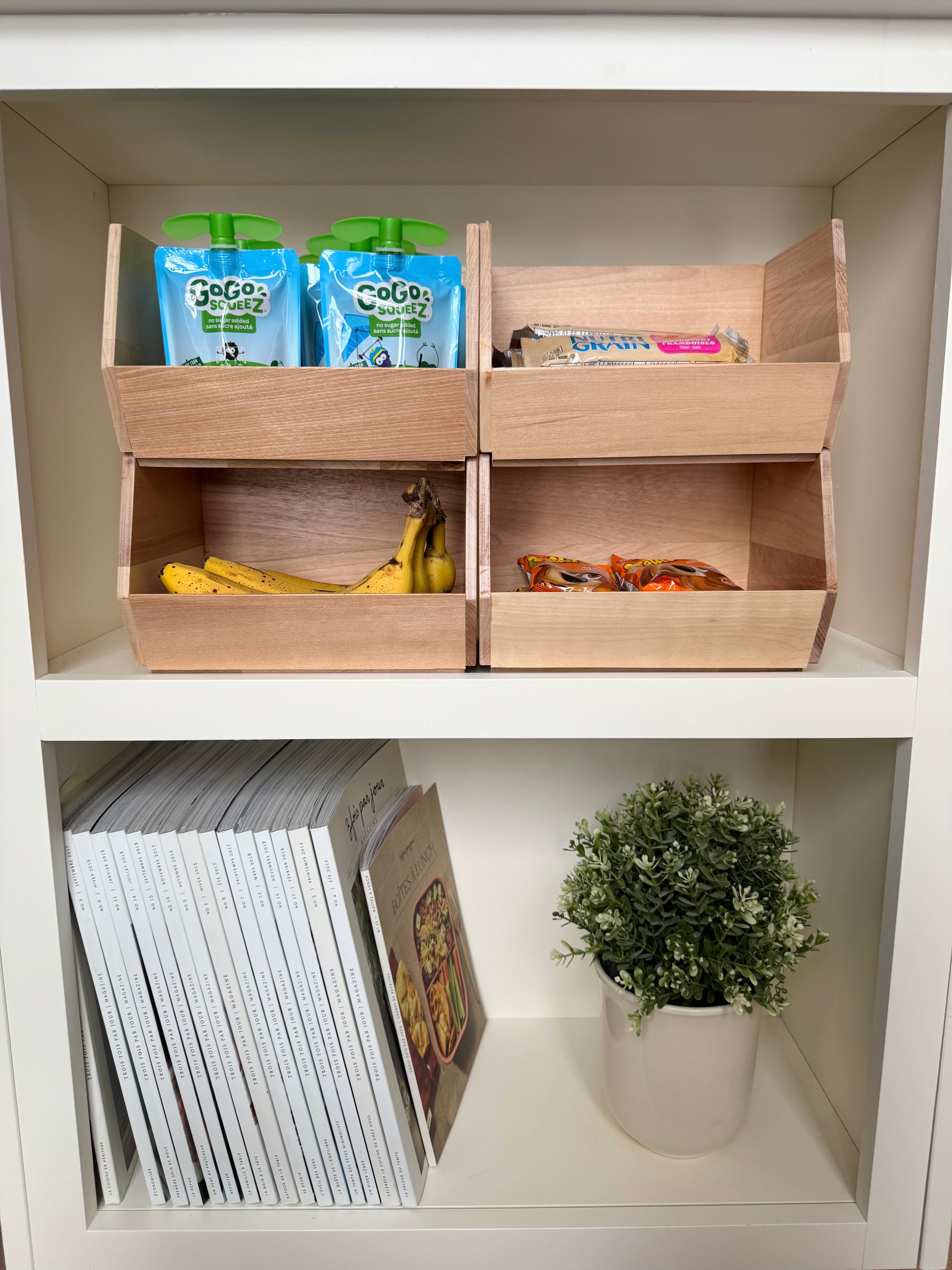 Fièrement faits au Québec, ces bacs allient design local et fonctionnalité pour répondre aux besoins du quotidien.