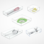 Fabriqué en matériau durable et facile à nettoyer, les différents formats sont pratiques, puisqu'ils s’adaptent à la plupart des dimensions de tiroirs et se combine facilement pour créer une configuration sur mesure.