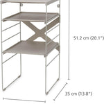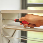 Sa structure en métal robuste assure une excellente stabilité et une grande durabilité, tandis que les tablettes en plastique solide offrent un support fiable et facile d’entretien. L’assemblage est simple et rapide : les étagères se clipsent solidement sur le cadre, sans outils complexes. Pour plus de sécurité, l’étagère peut également être vissée au mur si nécessaire.