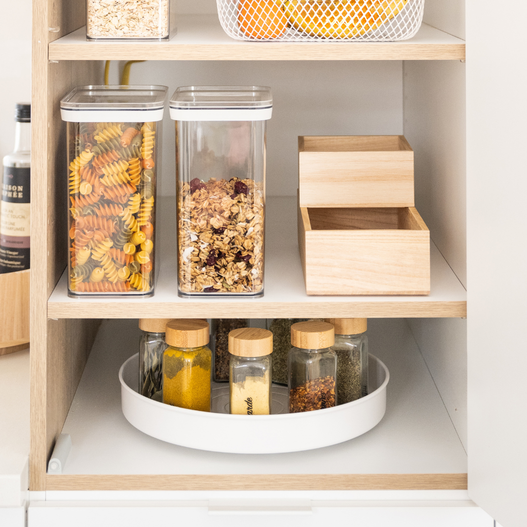 Solution parfaite à mon rangement de bouteilles d'huiles et vinaigre. Plateau solide, qui tourne bien.