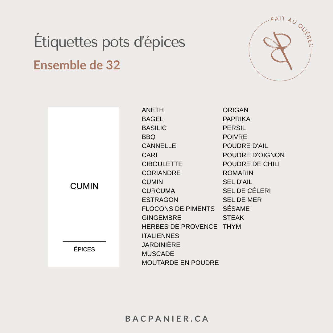 Add a refined touch to your pantry with our rectangular labels for spice jars. These minimalist, modern labels are perfect for clearly identifying your spices while harmonizing your storage space. Designed to fit most containers, they're ideal for jars of all sizes.