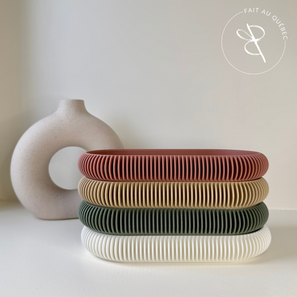 This oval wooden tray made in Quebec is the perfect companion for adding a touch of organization and elegance to any room in the house. Designed for multiple uses, it can be used as a jewelry holder in the bedroom, a key pocket in the hallway, or even as storage for paper clips and small accessories in the office. Its elegant, minimalist shape makes it a decorative and functional element that harmoniously complements the other products in this collection.