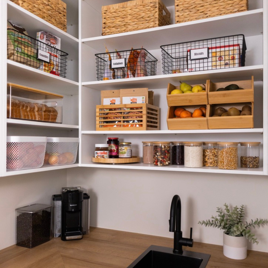 Nous utilisons principalement les produits de rangement disponibles sur notre boutique Bac & Panier: bacs, paniers, étiquettes, contenants, et plus encore. Lors d’un service d’organisation, nos clients bénéficient d’un rabais exclusif de 10 %sur tous nos produits. Si un besoin spécifique demande un produit que nous ne tenons pas, nous vous accompagnons dans la recherche de la meilleure solution.