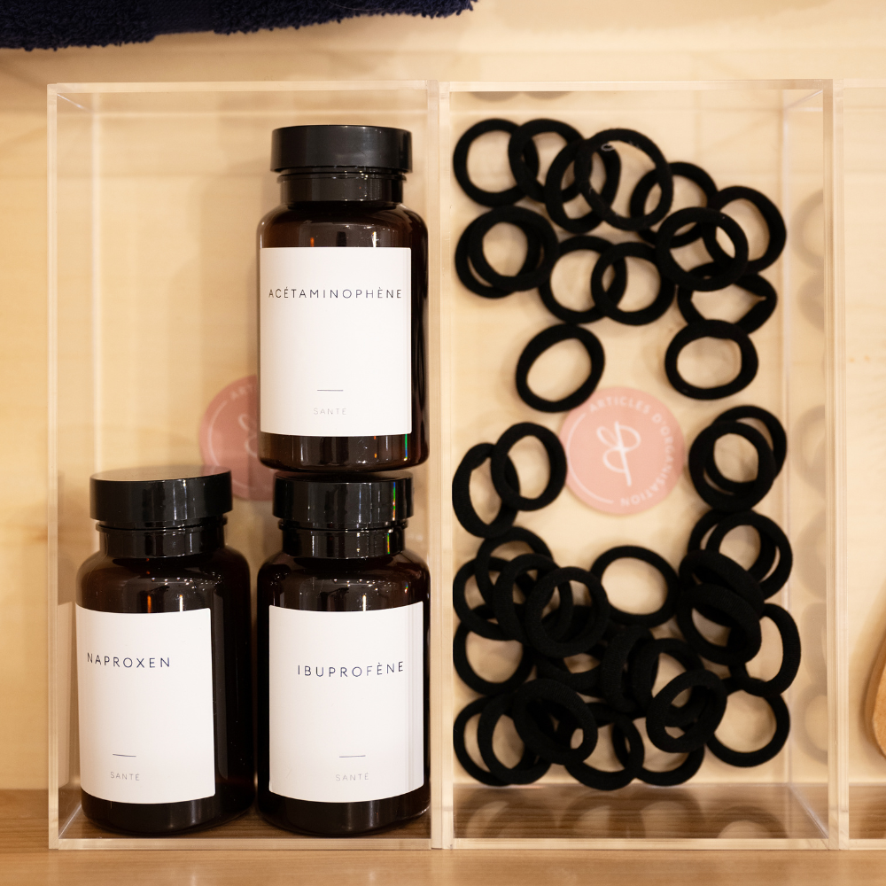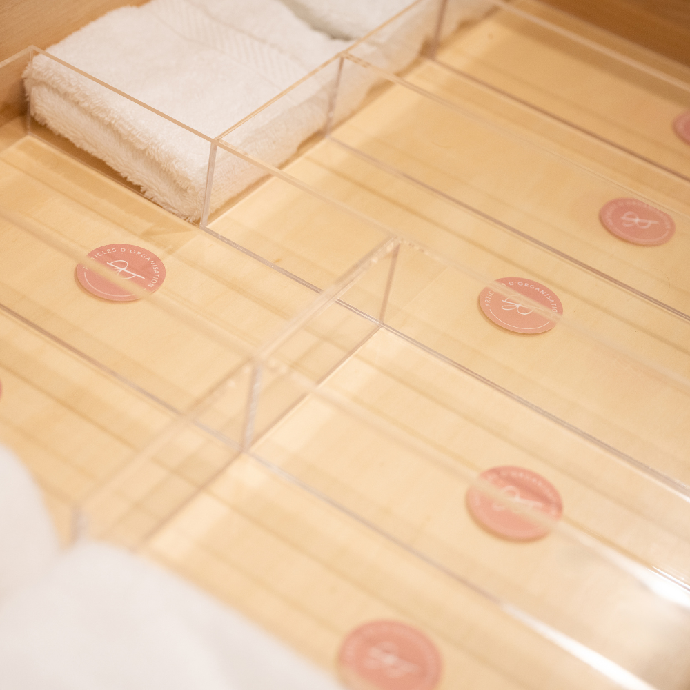 Fabriqué en acrylique durable, il offre un rangement discret, élégant et fonctionnel. Sa transparence totale vous permet de repérer d’un coup d’œil ce que vous cherchez, tout en gardant vos tiroirs parfaitement rangés.